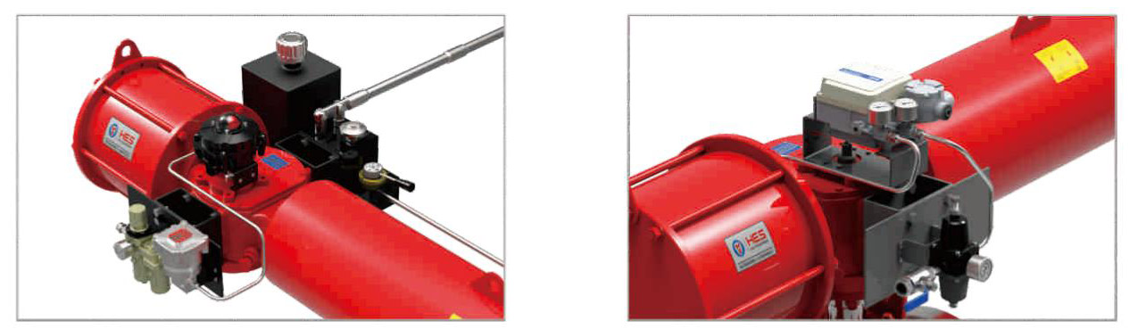 带有电磁阀、信号返回器、气源过滤器、液压手动操作器 带有电气定位器(调节型 )、气源过滤器